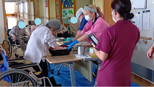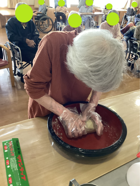 代表して数名の入所者様が蕎麦のたね作りにも挑戦させていただきました。