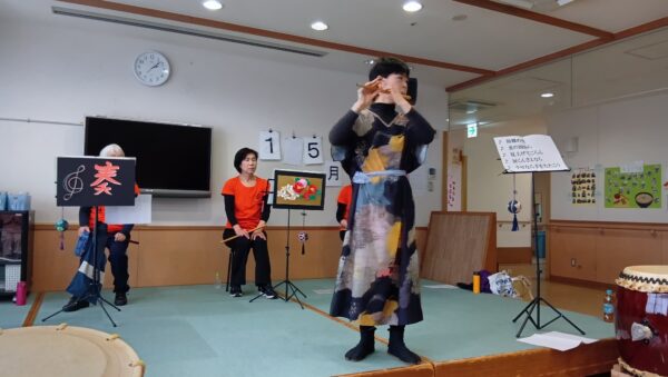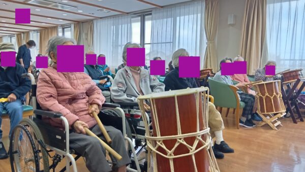 笑顔で一生懸命に叩かれていましたが結構体力が必要だなと感じ、利用者様も和太鼓の演奏ってすごいねーと話されていました。