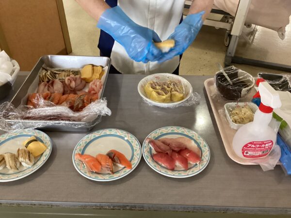 昼食に寿司祭りとして入所者様にマグロ・サーモン・ぶりなどを提供しました。