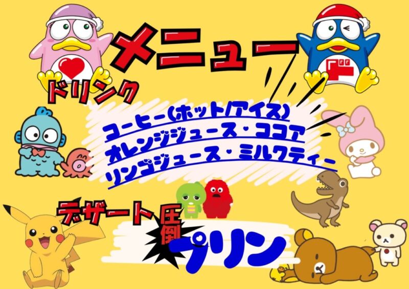 今回のまこと喫茶のテーマを「キャラクター」としたので、メニュー表をはじめ職員の服装や装飾まで