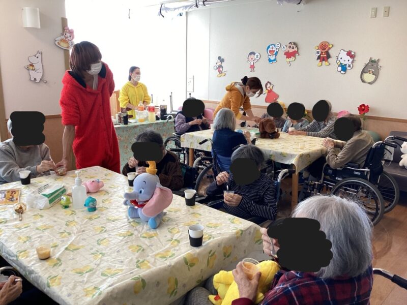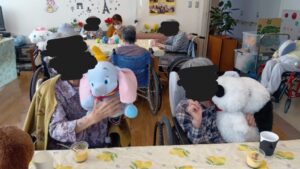 仲の良い方と談笑したり、着ぐるみを着た職員と写真を撮ったりと皆様思い思いの時間を楽しんでおられました。