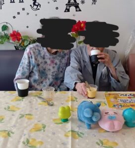 ご家族様との面会時に使用して頂いているデイルームを装飾し、皆様をお連れしてプリンとお好きな飲み物を提供させて