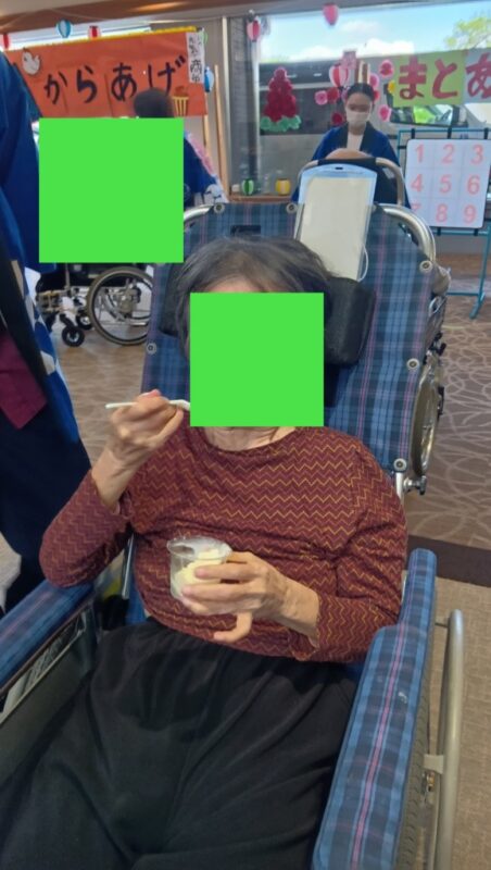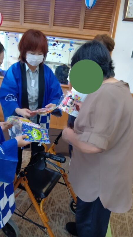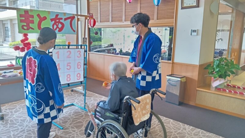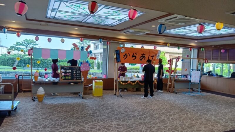 R7.7/10 夏祭り 2025.07.14 「R7.7/10」AM9:30~PM16:30 1Fロビーにて夏祭りを実施しました。 2F 的あて 3F アイスクリーム 4F からあげ 利用者様の様子 お神輿 皆様、笑顔で楽しまれていました! 2F 介護職員 料金変更のお知らせ 前の記事 七夕 次の記事